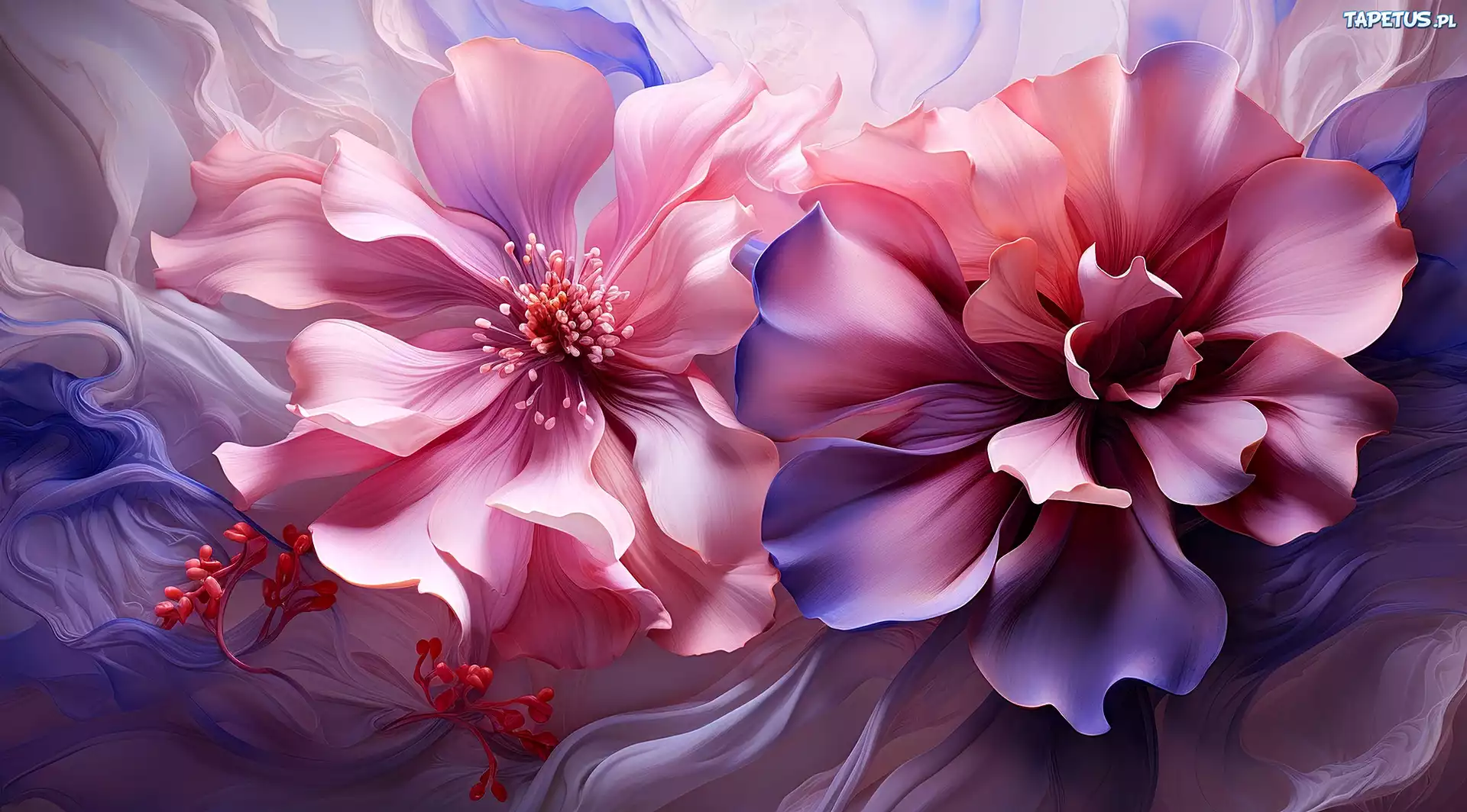Tapeta Dwa, Kwiaty, Różowe, Grafika