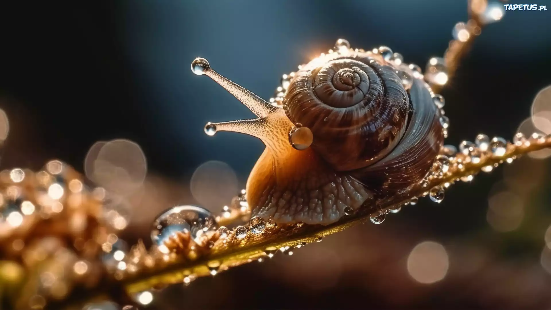 Tapeta Ślimak, Rogi, Krople, Wody, Łodyga, 2D