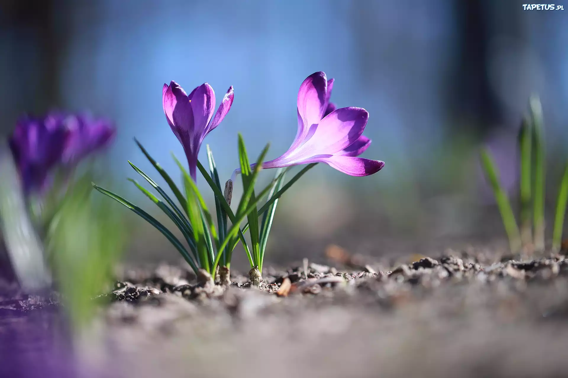 Tapeta Fioletowe, Rozświetlone, Kwiaty, Krokusy