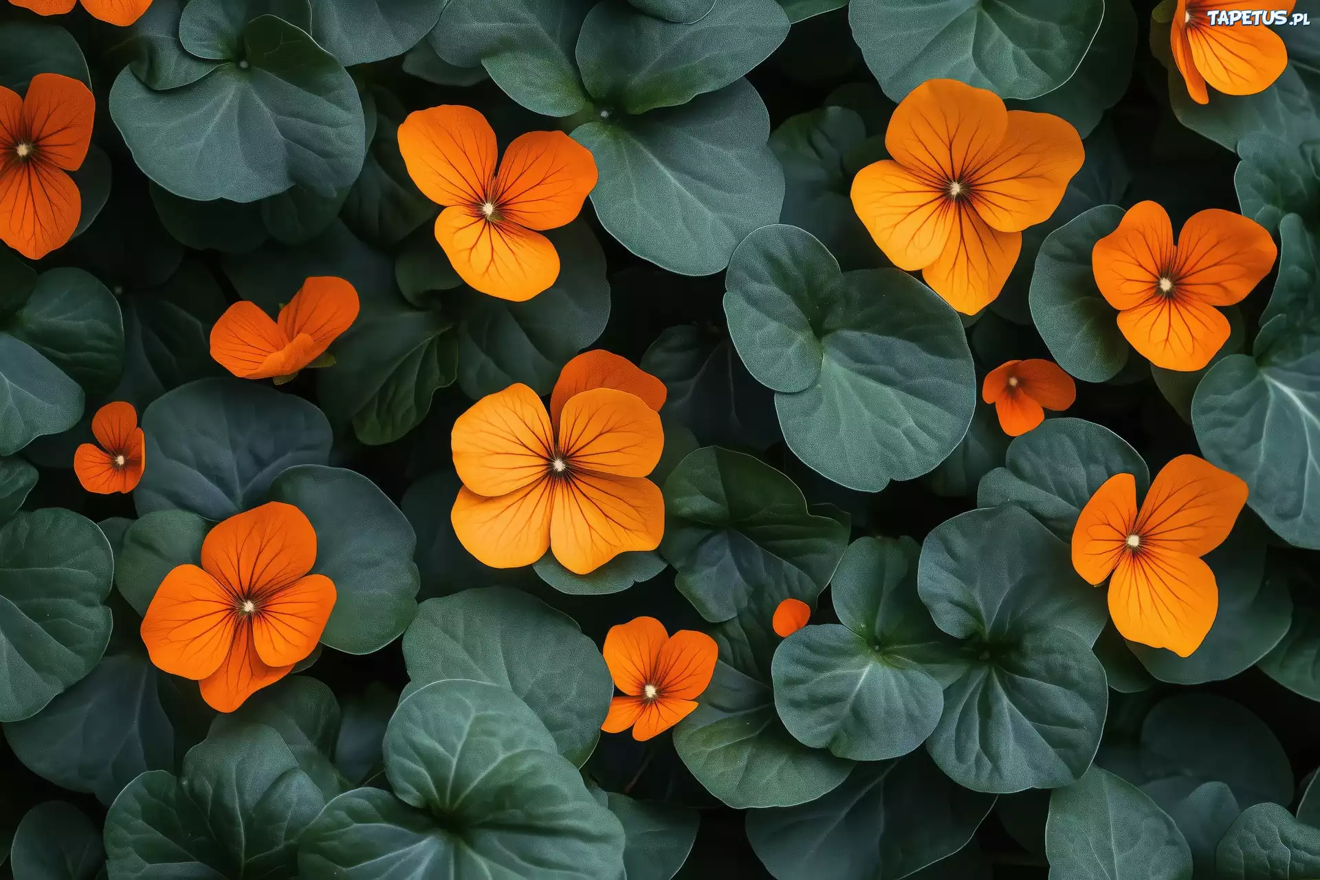 Tapeta Pomarańczowe, Małe, Kwiaty, Liście