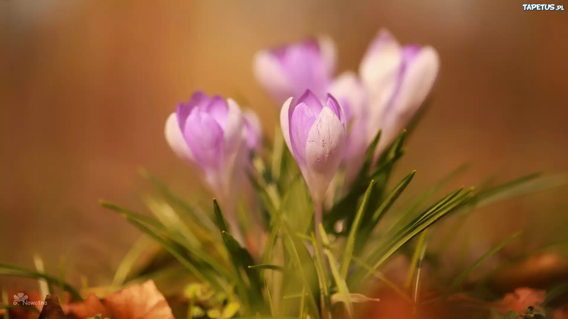 Tapeta Kępka, Kwiaty, Krokusy, Fioletowe