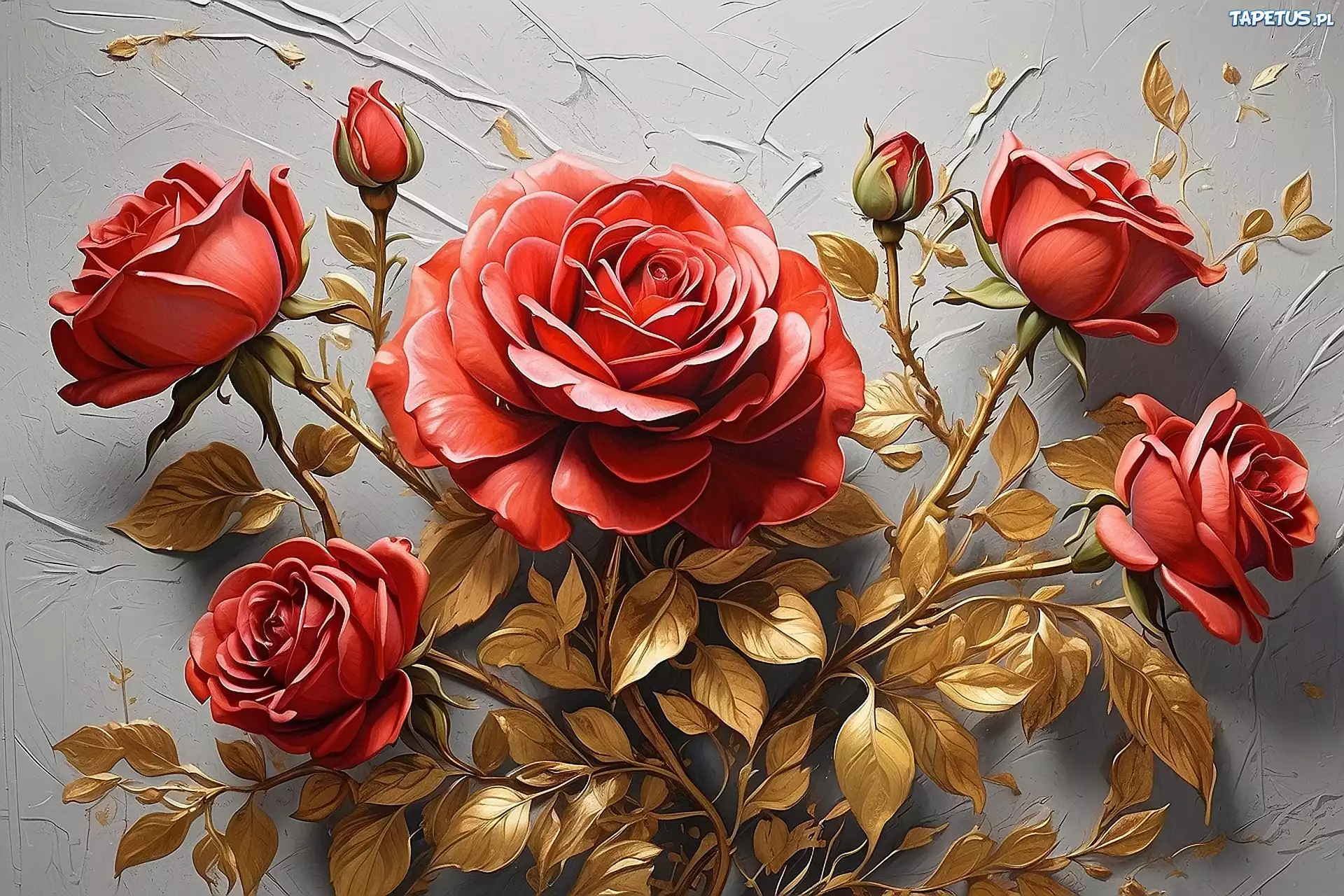 Słowa Kluczowe: Róże , Czerwone , Złote , Liście , Jasne , Tło