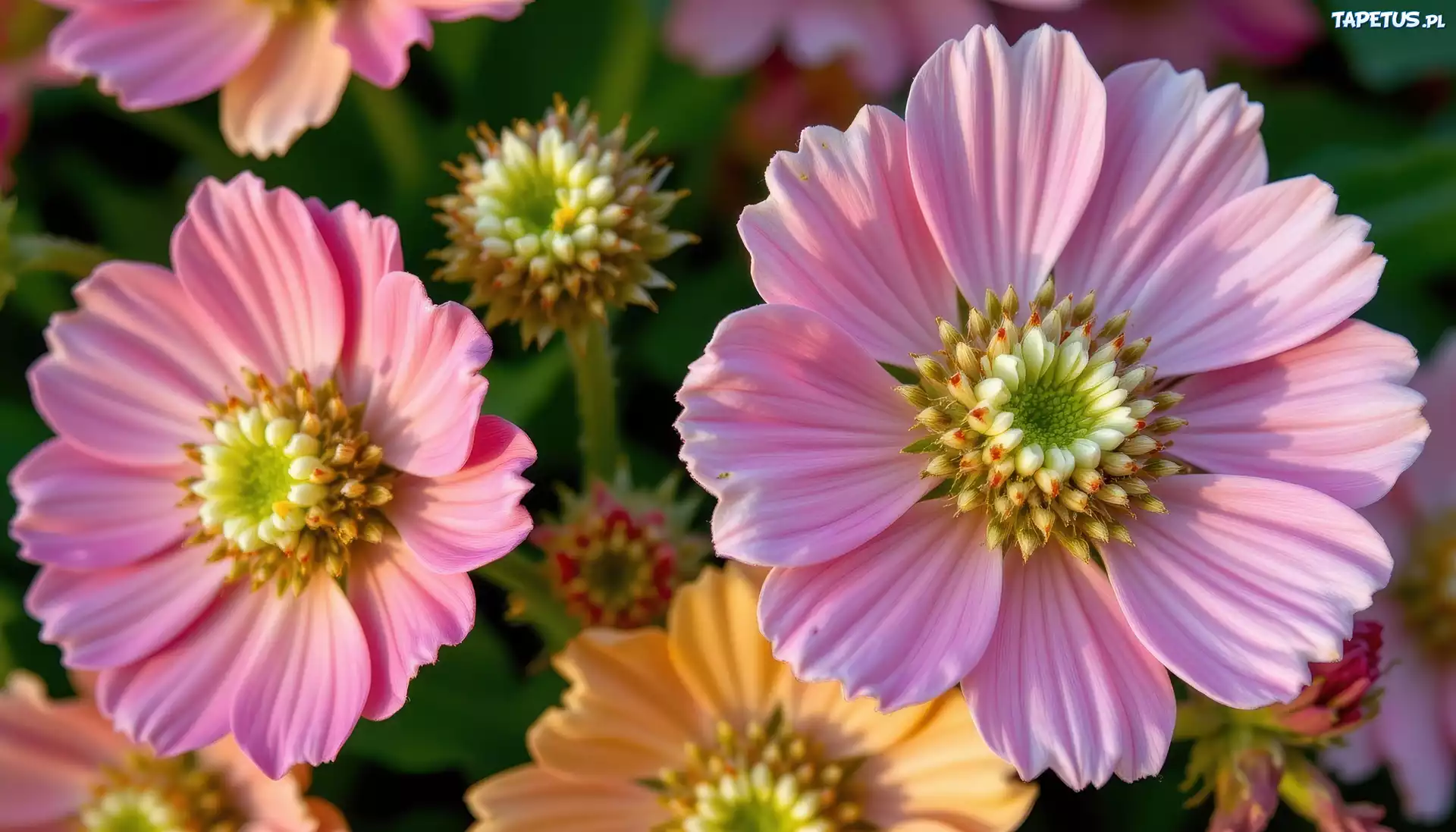 Tapeta Różowe, Rozświetlone, Kwiaty, Grafika AI
