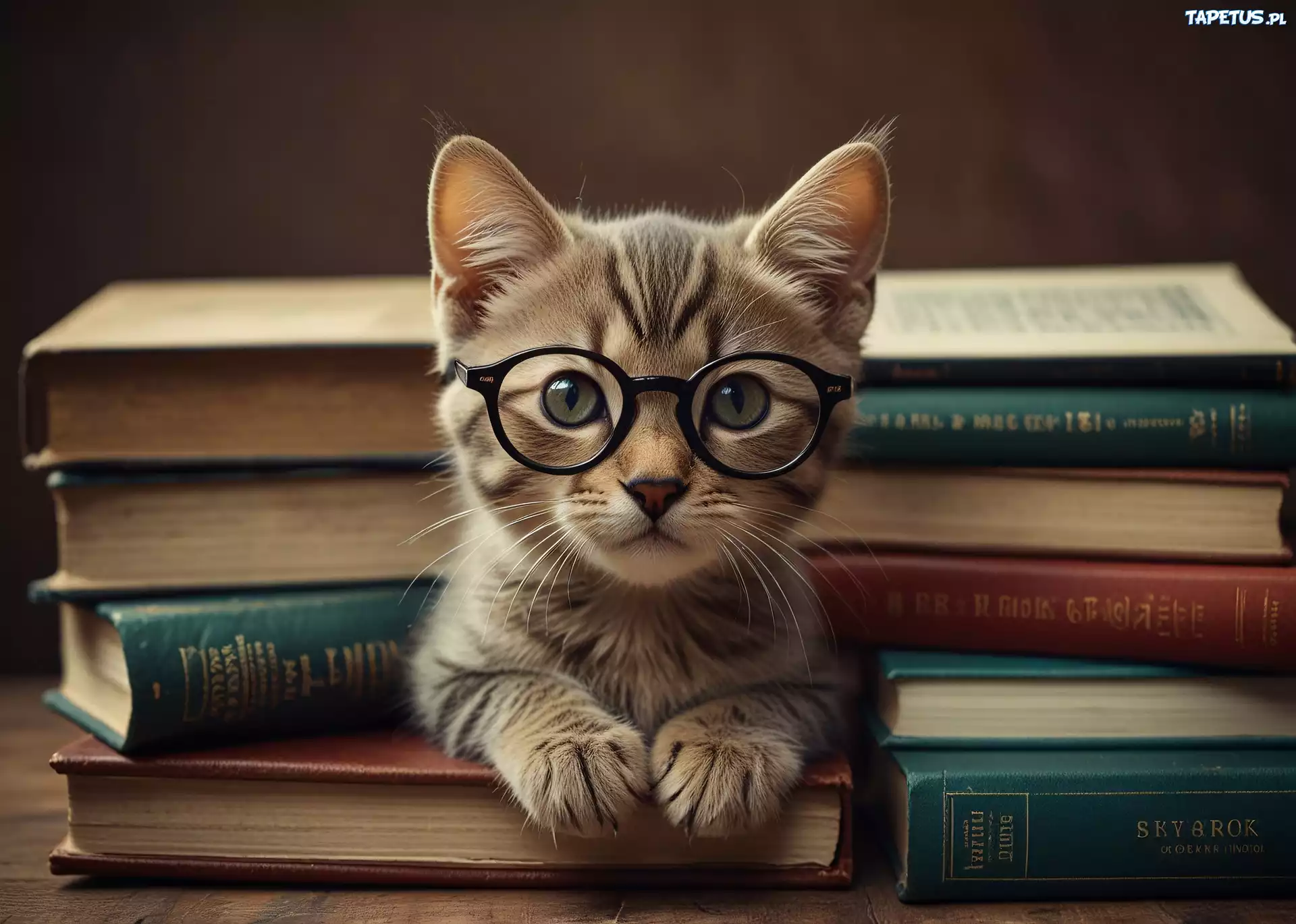 Słowa Kluczowe: Mały , Kot , Okulary , Książki , Grafika