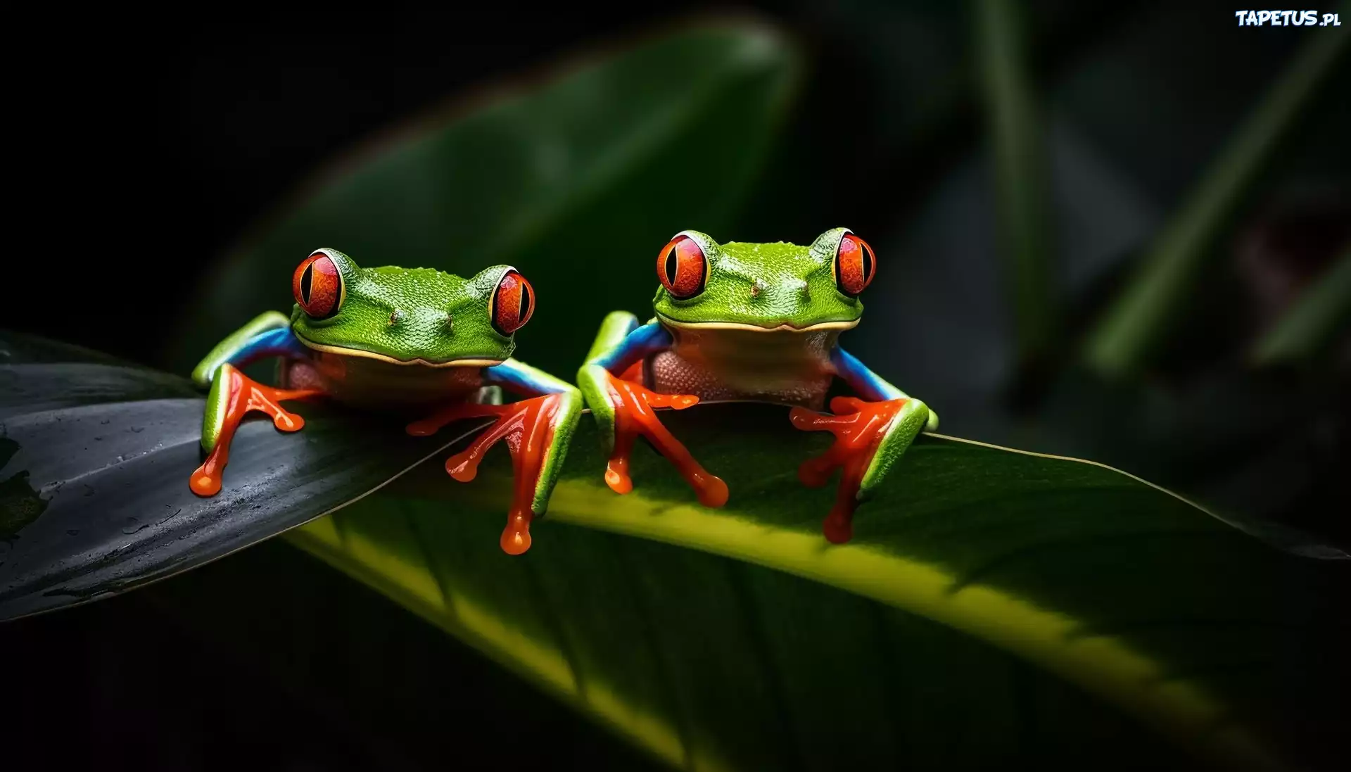 Tapeta Dwie, Żaby, Liść, Ciemne, Tło