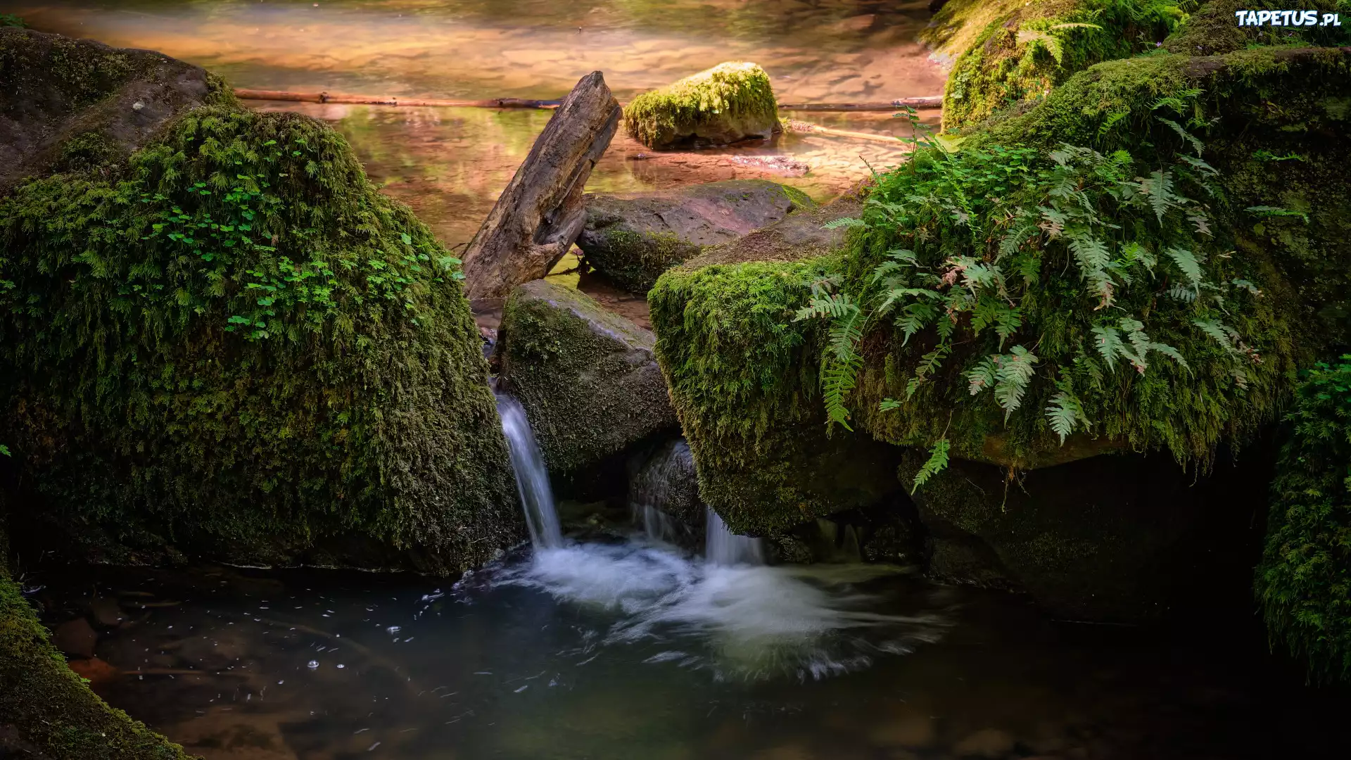 Tapeta Rzeka, Omszałe, Kamienie, Rośliny, Paprocie