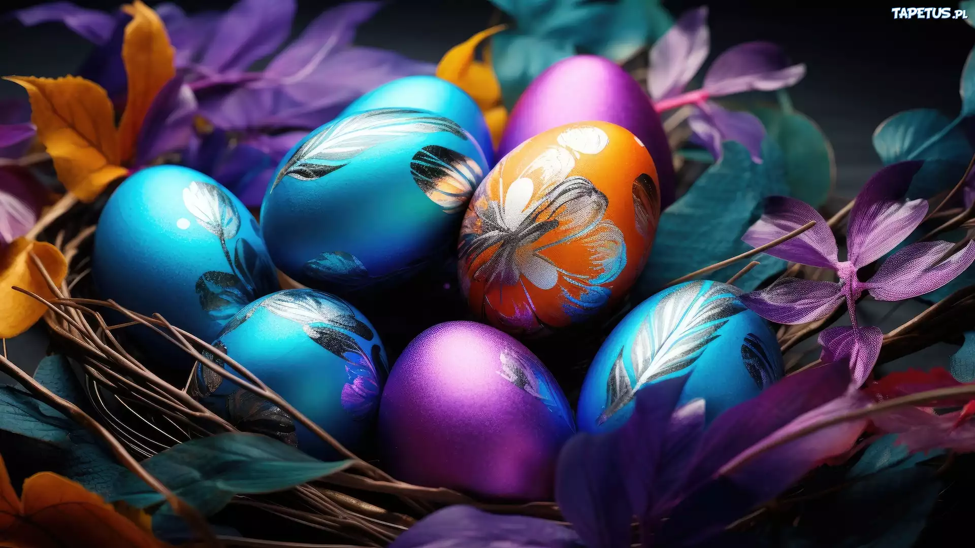 Tapeta Wielkanoc, Pisanki, Liście, Gałązki