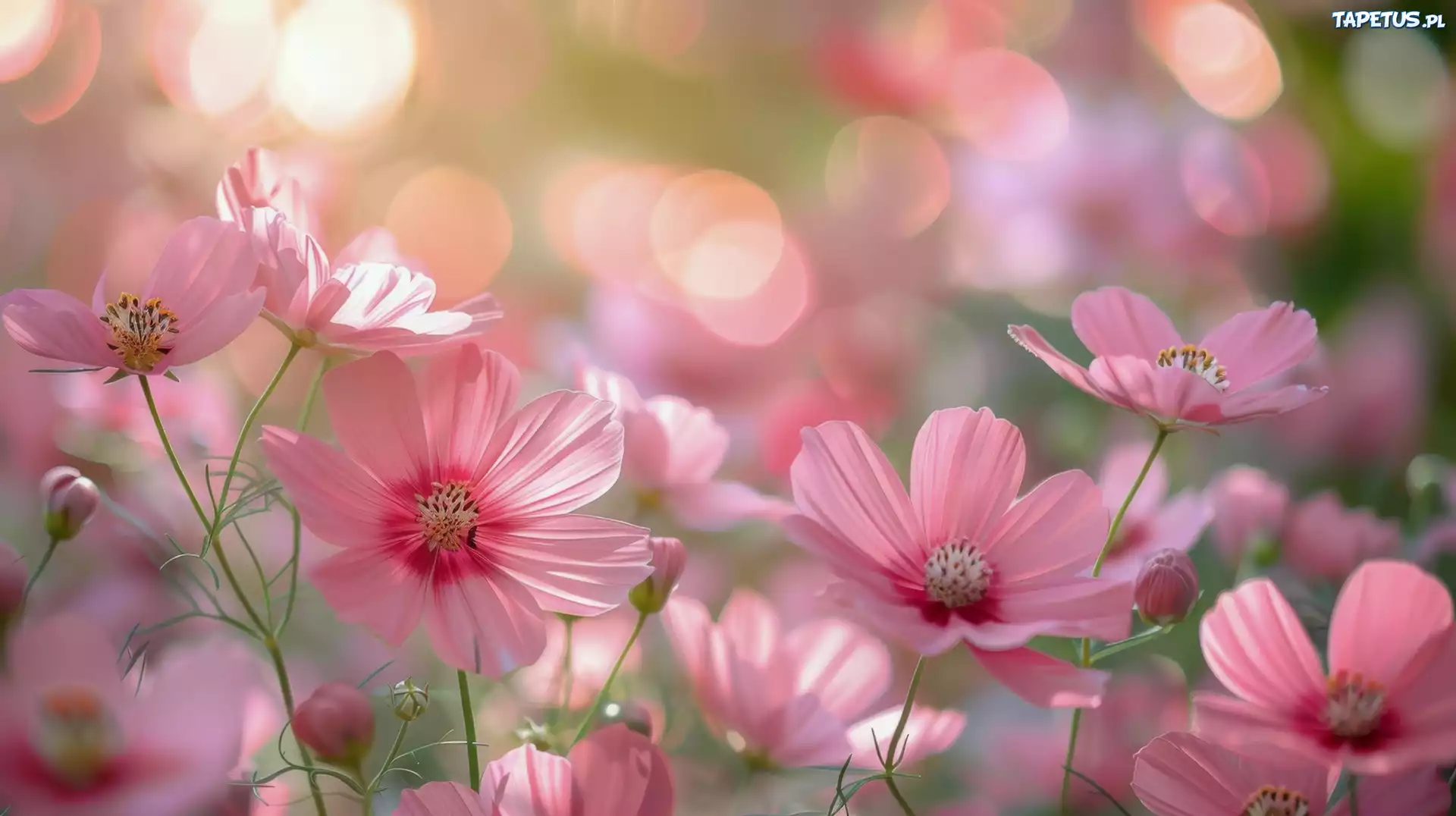 Tapeta Kosmea, Różowe, Rozkwitnięte, Kwiaty, Grafika