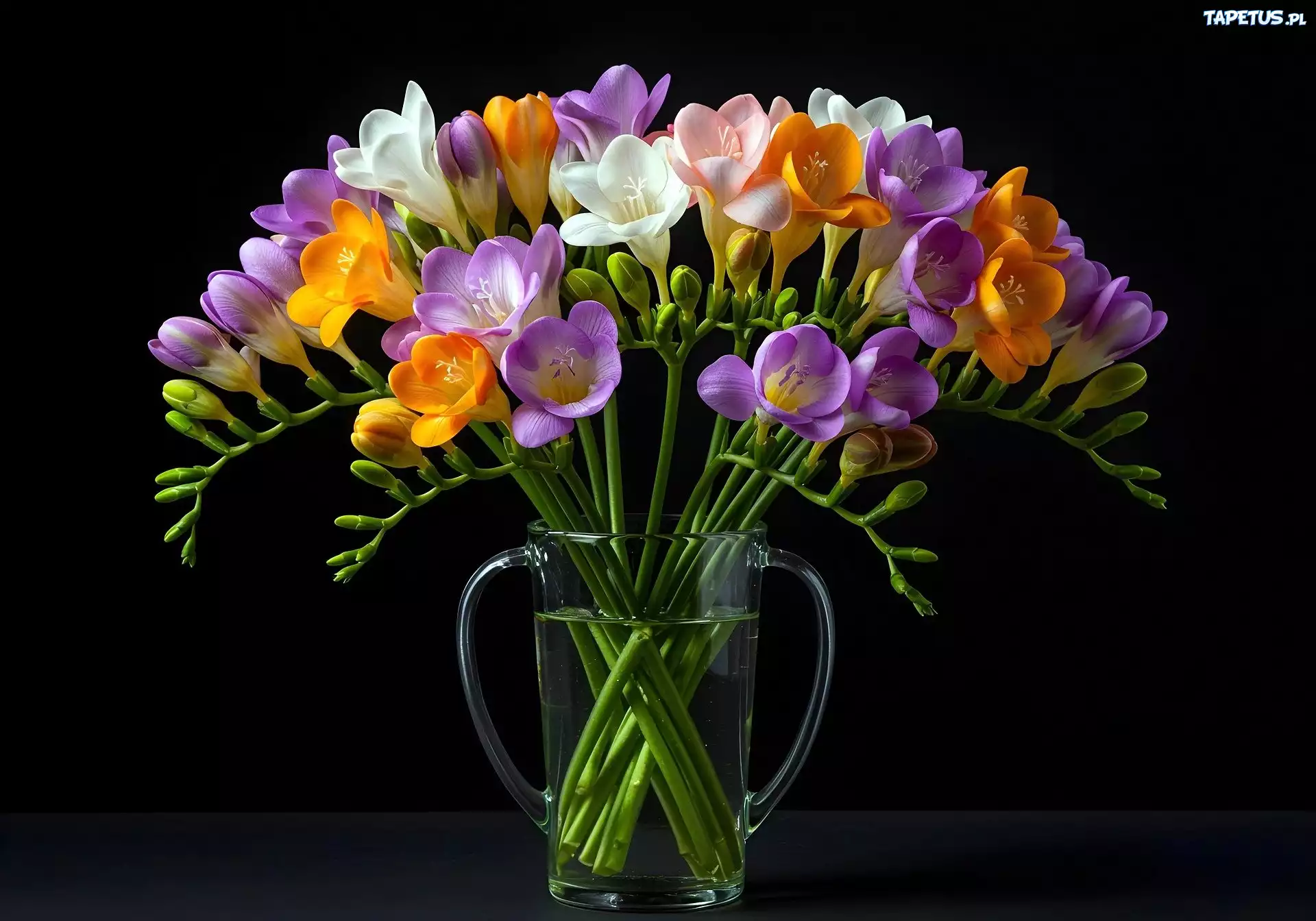 Tapeta Frezje, Kolorowe, Kwiaty, Czarne, Tło