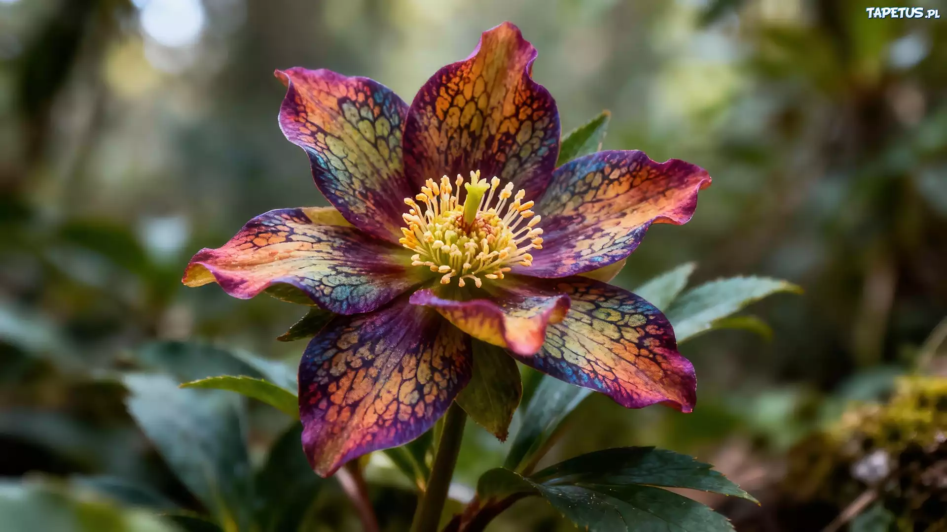 Tapeta Kwiat, Kolorowy, Liście, Grafika AI