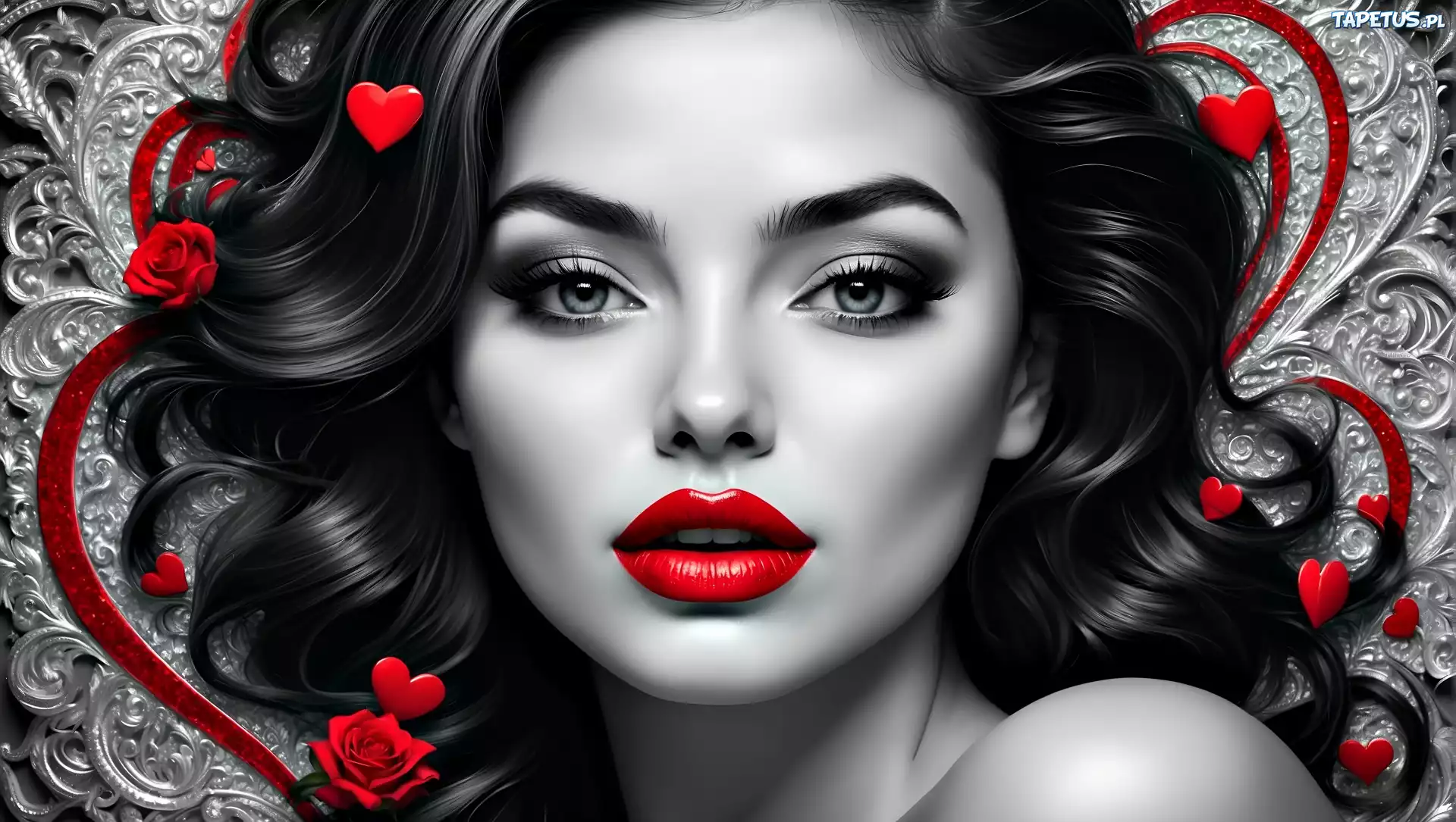Tapeta Kobieta, Grafika, Makijaż, Kwiaty