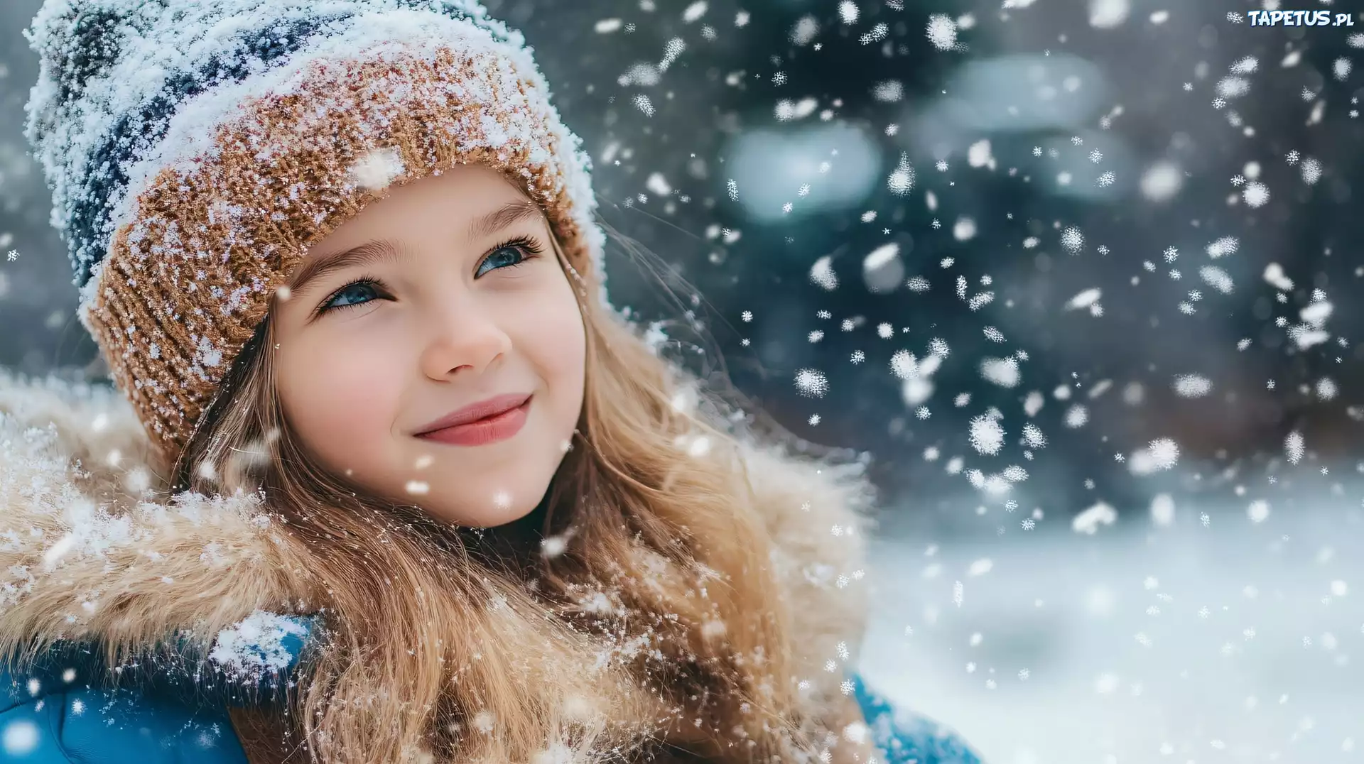 Tapeta Dziecko, Długowłosa, Dziewczynka, Czapka, Śnieg