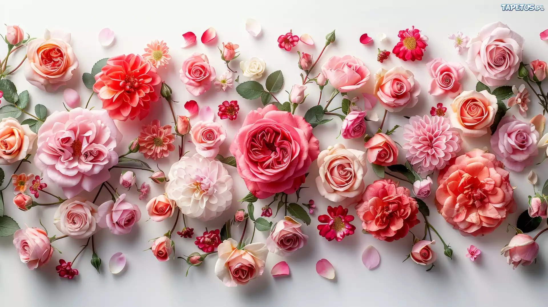 Tapeta Kompozycja, Kwiaty, Różowe, Róże, Płatki