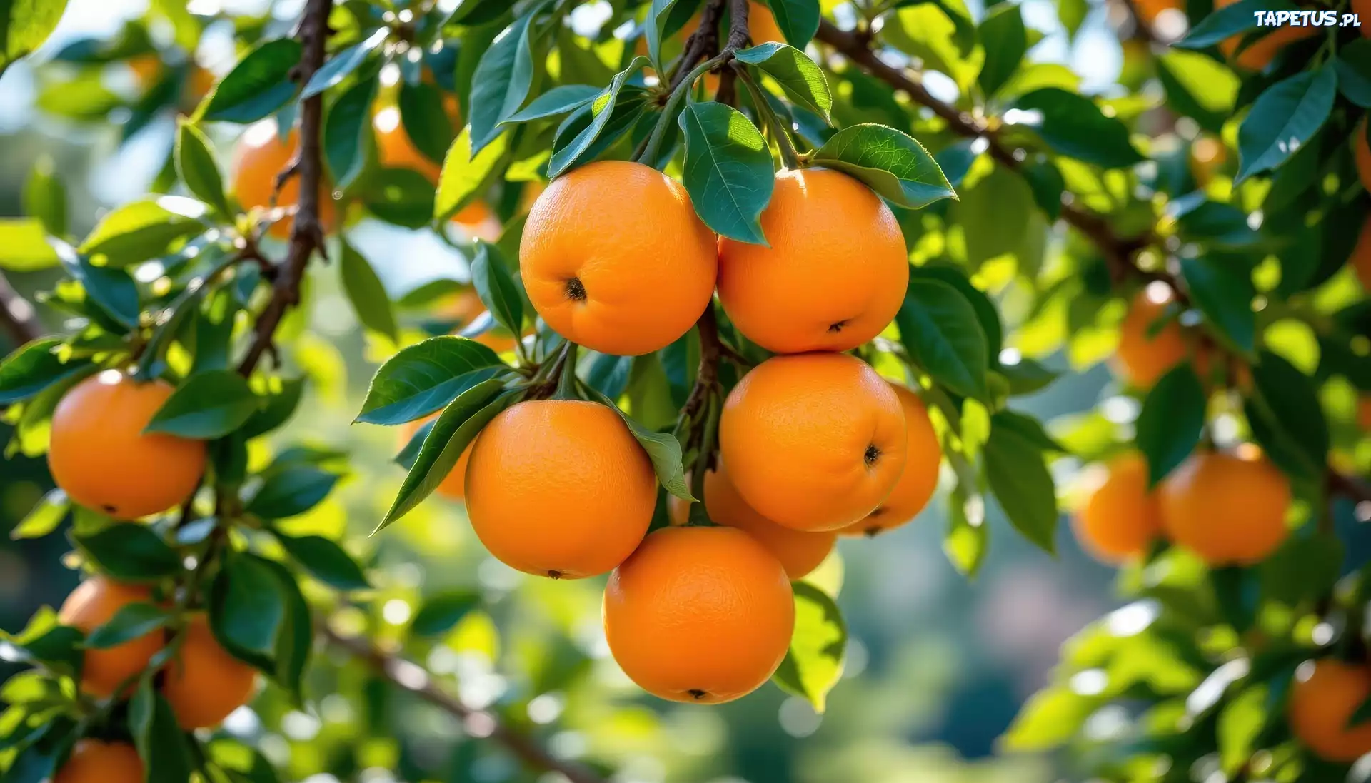 Tapeta Pomarańcze, Gałąź, Liście, Grafika AI