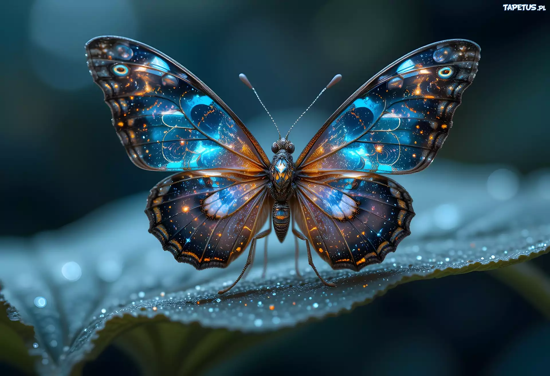 Tapeta Przyroda, Natura, Owad, Insekt, Motyl, Kolorowy, Skrzydełka, Liść, Kropelki