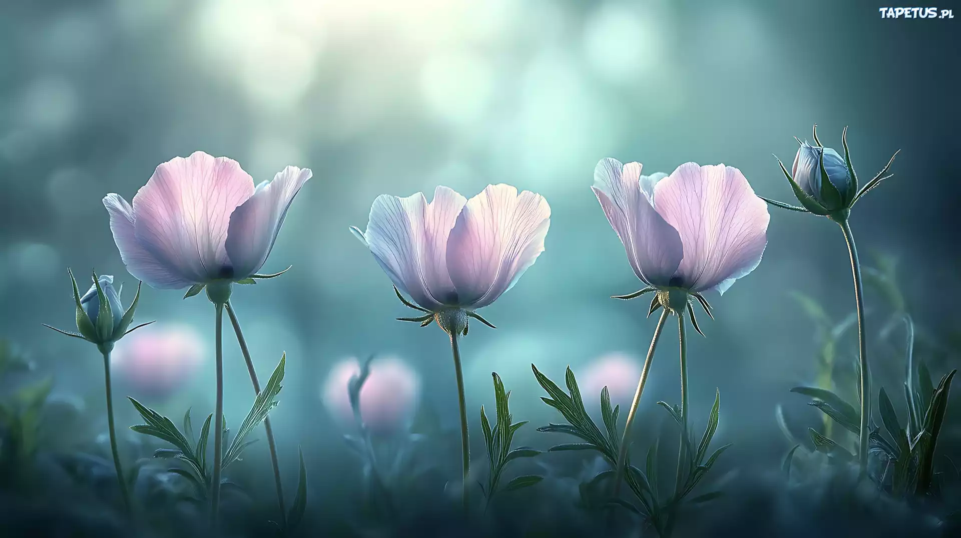 Tapeta Trzy, Kwiaty, Dwa, Pąki, Światło, Grafika