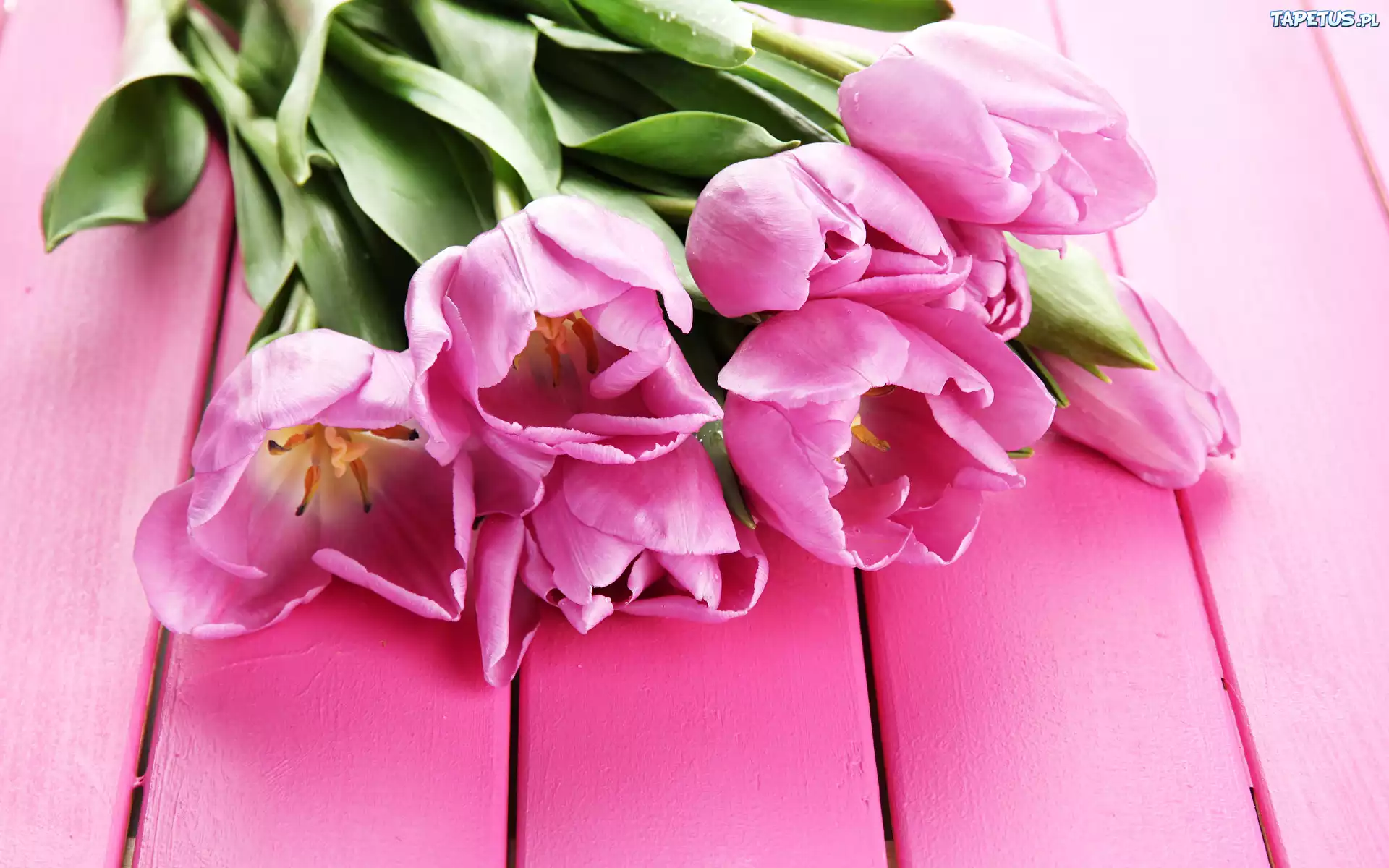 Tapeta Tulipany, Różowe, Bukiet, Różowe, Deski