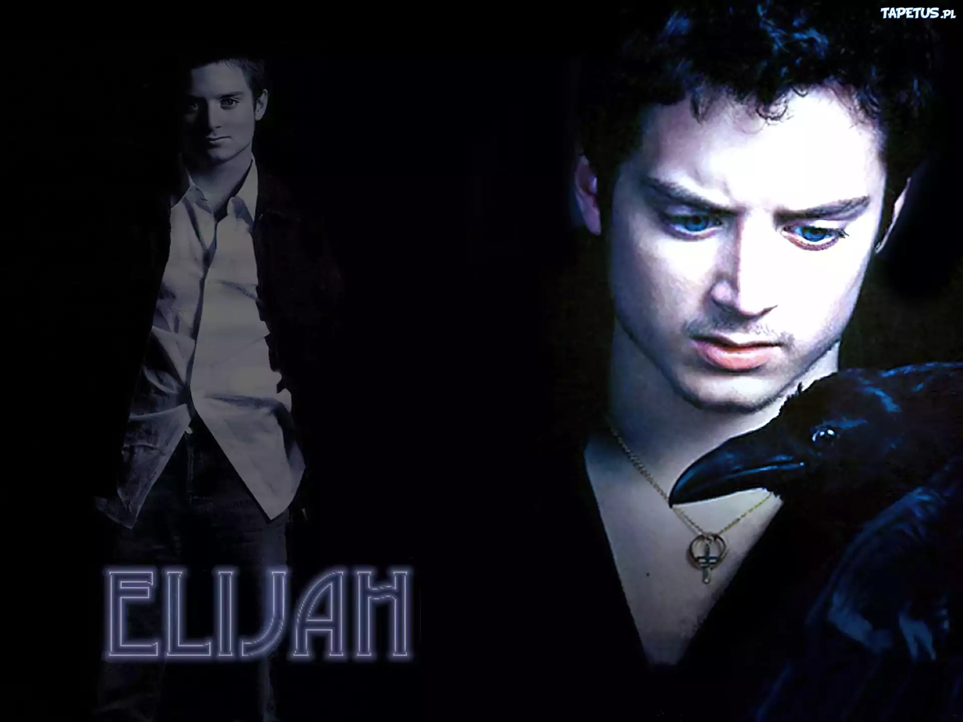 Tapeta Elijah Wood,niebieskie oczy, kruk