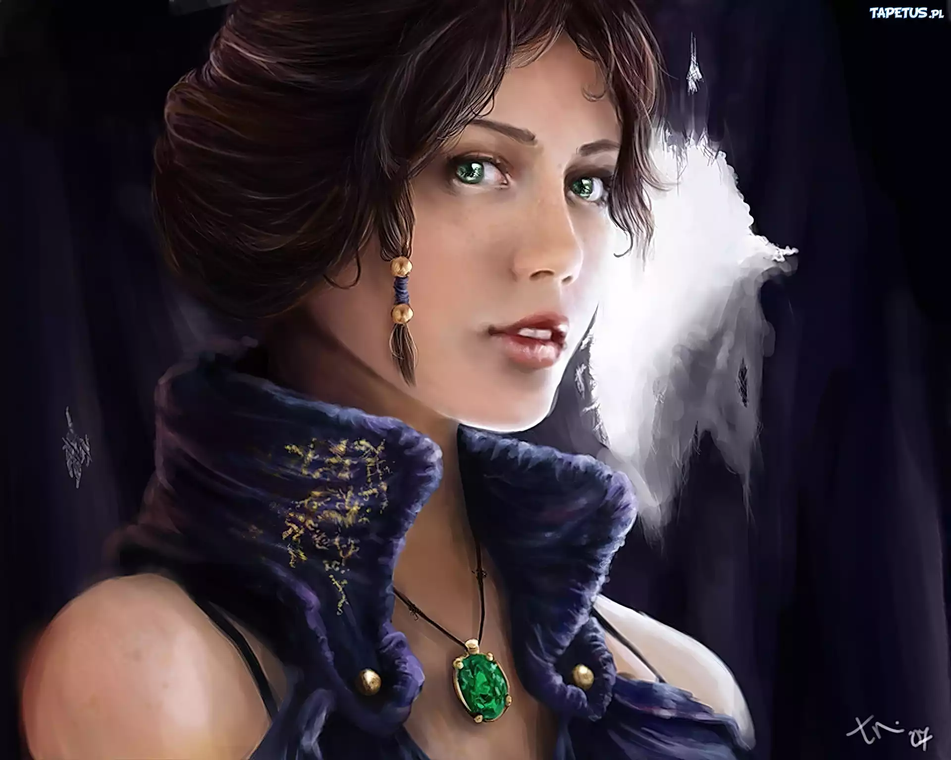 Tapeta Dziewczyna, Zielone, Oczy, Medalion