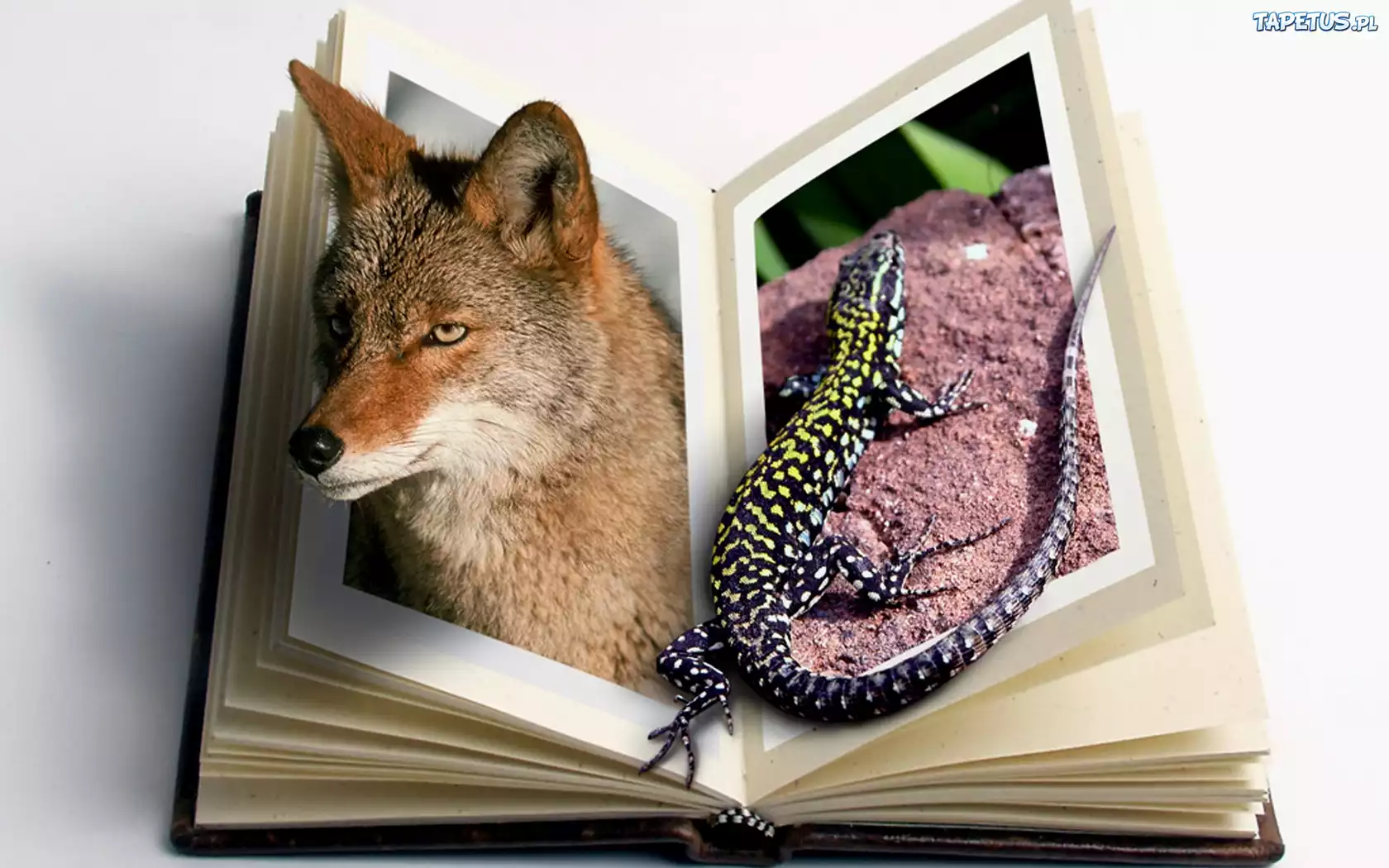 Tapeta Lis, Jaszczurka, Książka, 4D