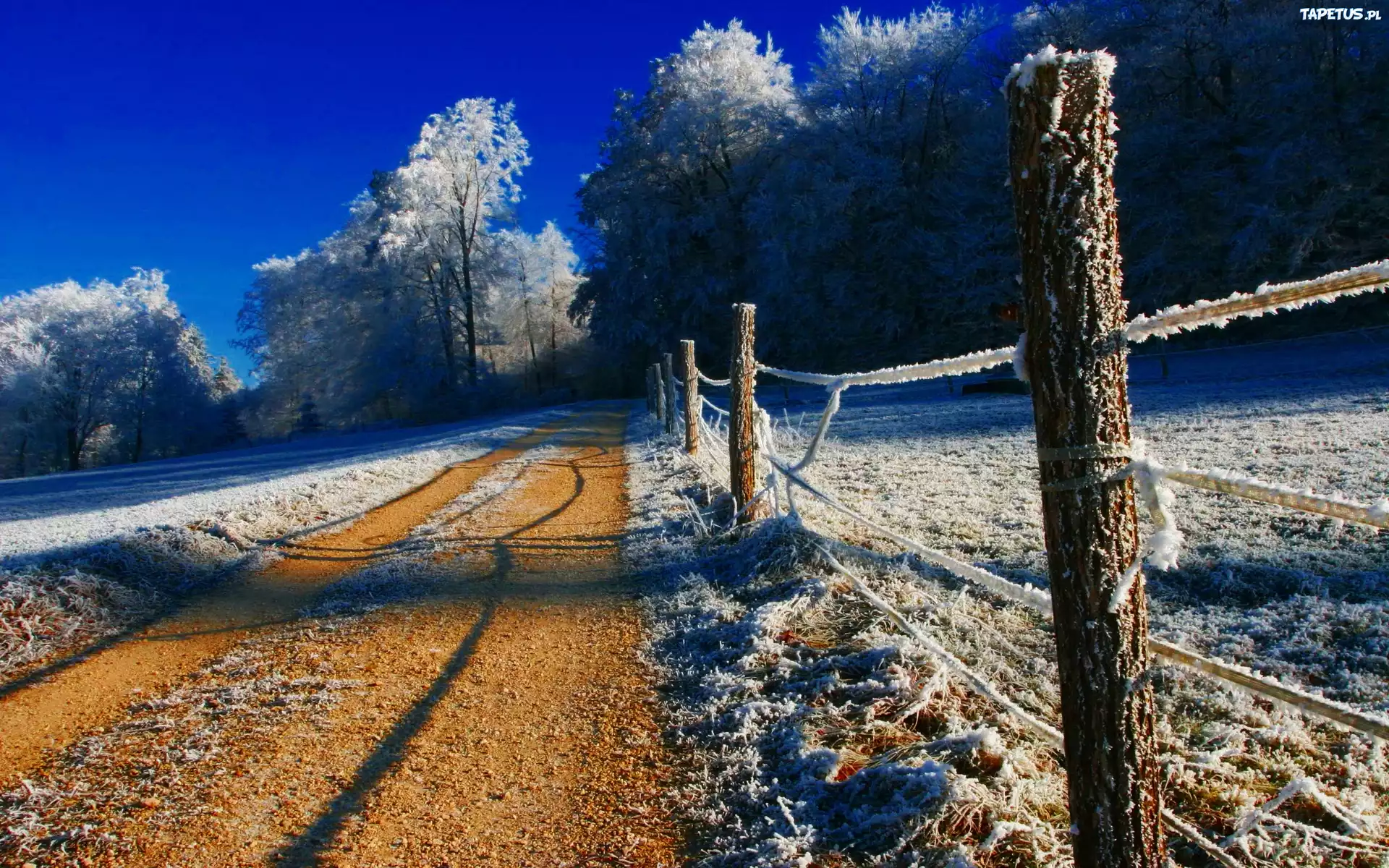 Tapeta Droga, Zima, Las, Ogrodzenie